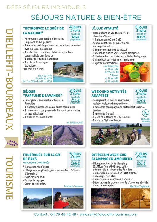 Rando et bien-être à deux en Drôme ProvençalePas besoin d’être un marcheur confirmé pour découvrir des paysages uniques et paisibles, pour se ressourcer et profiter du calme et de la nature. Et après deux ou trois belles randonnées dans le Pays Dieulefit-Bourdeaux, deux temps de détente sont prévus.
